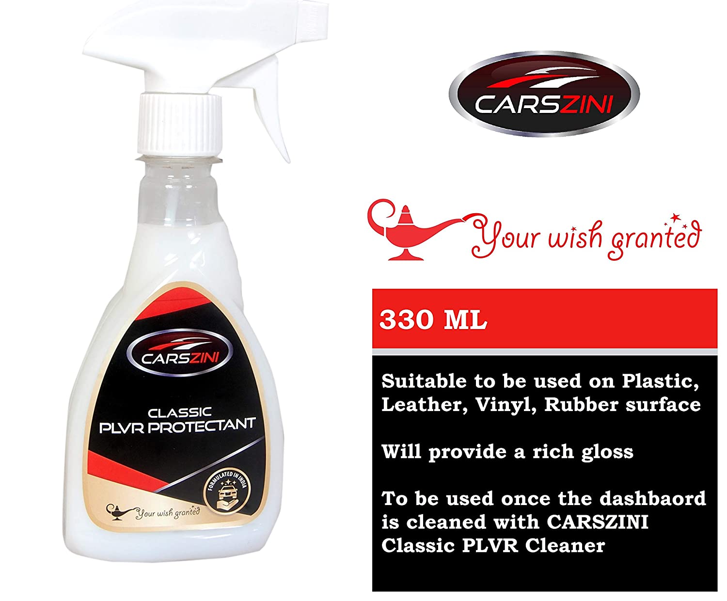 Plastic, Leather, Vinyl, Rubber protectant is a specialised blend of chemicals formulated to provide richness to the areas without excessive shine. This protectant polish creates a layer avoiding dirt and road grime to settle into the pores of the surface sooner.