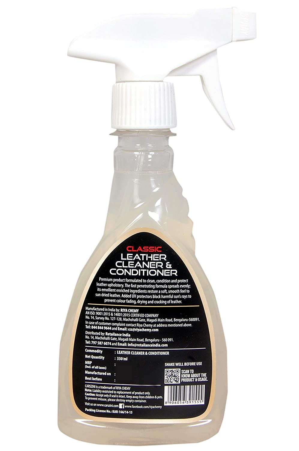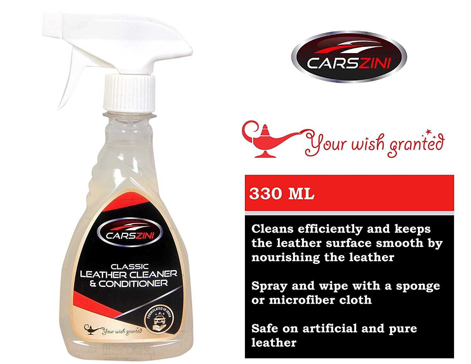 Premium product formulated to clean, condition and protect leather upholstery. The fast penetrating formula spreads evenly; its emollient enriched ingredients restore a soft, smooth feel to sun dried leather. Added UV protectors block harmful sun’s rays to prevent colour fading, drying and cracking of leather.